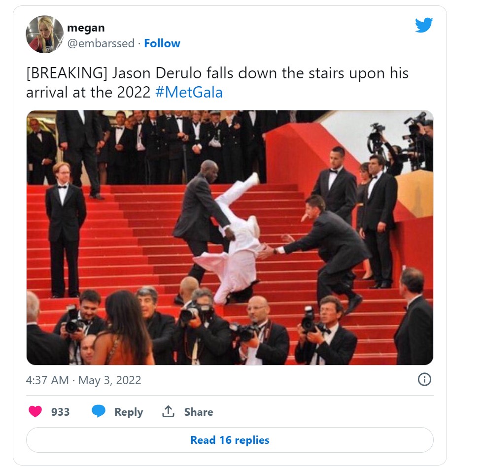 Imagine attending the Cannes Film Festival in 2011, walking down a flight of stairs in a pristine white tuxedo, with cameras following your every move. You’re in good spirits until you trip and fall embarrassingly down the stairs in front of a crowd of onlookers. Fast forward to 12 years later, and you find photographs of yourself online, but with people misrepresenting you as Jason Derulo, falling down the steps of the Met Gala. The only problem is, you were never at the Met Gala.